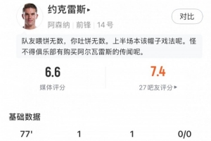 體育資訊1月29日訊 歐冠聯(lián)賽階段第8輪,阿森納主場(chǎng)對(duì)陣阿拉木圖凱拉特,約克雷斯代表阿森納首發(fā)出戰(zhàn),在第77分鐘被替換下場(chǎng),球員本場(chǎng)數(shù)據(jù)如下: