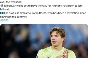 報(bào)道稱將為這位22歲的年輕門將支付300萬英鎊轉(zhuǎn)會(huì)費(fèi)。埃勒伯格今日將前往桑德蘭,并將在周末接受體檢。他的加盟預(yù)計(jì)將為桑德蘭門將安東尼·帕特森轉(zhuǎn)會(huì)米爾沃爾鋪平道路。球員風(fēng)格與羅賓·羅夫斯相似,后者自夏季加盟以來一直給人留下深刻印象。