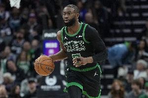 此役凱爾特人球星杰倫·布朗繼續(xù)出色發(fā)揮,打了29分鐘20投12中,三分6中4、罰球3中2砍全場最高30分13籃板外加2助攻1搶斷,也有4失誤,正負(fù)值+16。
