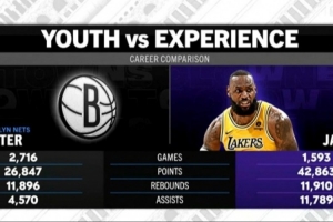 湖人客場(chǎng)挑戰(zhàn)籃網(wǎng),轉(zhuǎn)播方曬出籃網(wǎng)全隊(duì)和詹姆斯的數(shù)據(jù)對(duì)比,籃網(wǎng)全隊(duì)的得分、籃板和助攻之和都沒(méi)有詹姆斯的個(gè)人數(shù)據(jù)多。