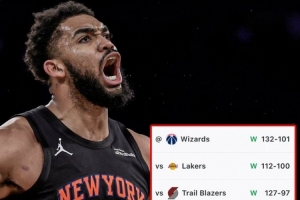 體育資訊2月4日訊 NBA常規(guī)賽,尼克斯132-101大勝奇才,豪取七連勝。