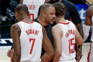 這兩場不倫不類申京阿門全廢,場上各自功能得趕緊調(diào),申京13+9+3/7+9+5,阿門11+4+4/8+5+7,這說明系統(tǒng)性出問題了,靠杜蘭特一個人狂掄能掄贏誰???