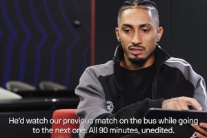 拉菲尼亞:“他不開(kāi)車,因?yàn)樗脤P臏?zhǔn)備訓(xùn)練,所以一直有司機(jī)接送他。他無(wú)時(shí)無(wú)刻不在備戰(zhàn)比賽。去下一場(chǎng)比賽的巴士上,他會(huì)把上一場(chǎng)的完整錄像再看一遍——全90分鐘,沒(méi)剪輯的原版,他就這么全程看完。