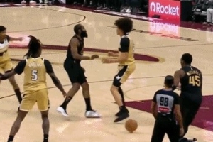 GIF-哈登不看人妙傳米切爾空切放籃