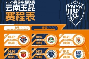 2026怡寶中超聯(lián)賽云南玉昆賽程表