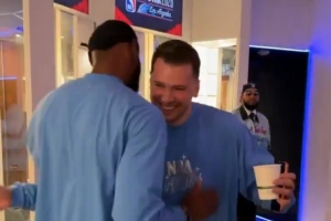 詹姆斯先后與庫(kù)里、唐斯、約基奇、字母哥和東契奇進(jìn)行了擁抱。