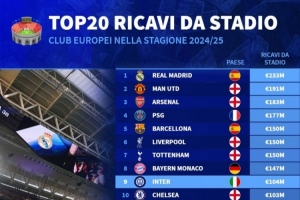 體育資訊2月17日訊 德國轉(zhuǎn)會市場列出了上賽季歐洲俱樂部主場門票收入排名,皇馬2.33億歐居首,曼聯(lián)1.91億歐次席。