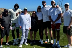體育資訊2月19日訊 今日塔圖姆更新IG動態(tài),曬出自己與詹姆斯、樂福一起打高爾夫的相關動態(tài)。
