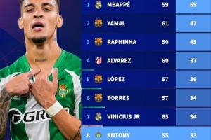 在曼聯(lián)經(jīng)歷低谷之后,安東尼在貝蒂斯重振了自己的職業(yè)生涯。本賽季到目前為止,他各項(xiàng)賽事代表貝蒂斯出戰(zhàn)29場比賽,打進(jìn)10球送出9次助攻。
