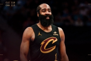 賽后騎士官方曬出哈登海報,配文:騎士隊又贏了!