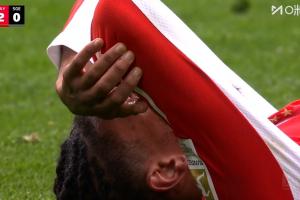體育資訊02月21日訊 拜仁vs法蘭克福第30分鐘,奧利塞在擺脫射門后倒地,捂著自己的左膝,隨后隊醫(yī)進場治療。