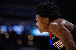 在阿門的防守下,尼克斯后衛(wèi)布倫森半場4中0僅靠罰球拿到2分。