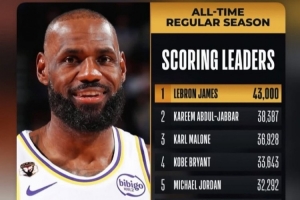 在本場(chǎng)比賽中,詹姆斯常規(guī)賽生涯總得分突破43000里程碑,賽后他轉(zhuǎn)發(fā)了個(gè)人海報(bào),并寫道:“繼續(xù)前進(jìn)???!?/p>