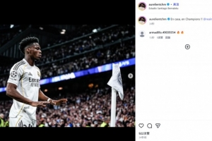 他也在賽后通過社媒曬出自己模仿詹姆斯的經(jīng)典雙手下壓慶祝照,并配文:“在主場,在歐冠!!@皇家馬德里 ??”