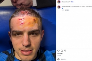 第90+4分鐘,科貝爾后場失誤,亞特蘭大左路傳中,禁區(qū)中本塞拜尼蝎子擺尾解圍,直接踢中克爾斯托維奇的頭部,后者頭部頓時血流如注。