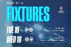 體育資訊2月27日訊 歐冠1/8決賽,亞特蘭大對陣拜仁,兩回合比賽時間已經(jīng)確定。