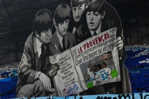 本場比賽馬賽球迷在主場展示出披頭士主題TIFO,披頭士是一支在1960年成立于利物浦的經(jīng)典英國搖滾樂隊。
