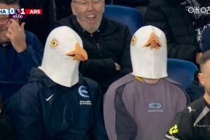 體育資訊03月05日訊 英超第29輪,阿森納客戰(zhàn)布萊頓,看臺上出現(xiàn)兩位球迷帶著海鷗頭套。