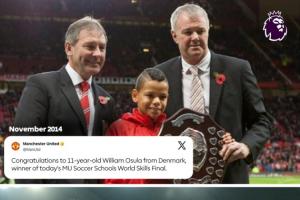 2014年,11歲的奧蘇拉曾參加曼聯(lián)足校舉辦的世界技巧大賽并奪得冠軍,今天他為紐卡絕殺曼聯(lián)。