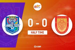 上半場(chǎng)補(bǔ)時(shí)5分鐘。半場(chǎng)戰(zhàn)罷,天津津門(mén)虎0-0重慶銅梁龍。