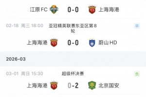 在2月中旬進行的亞冠精英聯(lián)賽東亞區(qū)最后兩輪賽事中,海港分別0-0戰(zhàn)平江原FC和蔚山HD。上周的超級杯,海港0-2不敵國安。