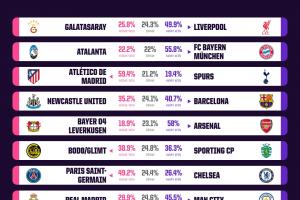 體育資訊03月10日訊 歐冠1/8決賽首回合將于本周中打響,數(shù)據(jù)機構(gòu)Opta的超級計算機給出了首回合比賽的勝負預測。