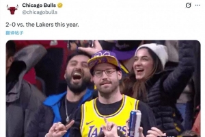 值得一提的是,上賽季公牛常規(guī)賽對湖人2勝0負。公牛官方曾發(fā)推嘲諷:“公牛本賽季對湖人2勝0負?!迸鋱D是湖人被公牛絕殺后湖人球迷不敢相信的表情包。