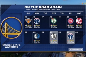 轉(zhuǎn)播方曬出本場(chǎng)過(guò)后勇士的賽程,他們將開啟六連客,對(duì)手分別為尼克斯、奇才、凱爾特人、活塞、老鷹和獨(dú)行俠。