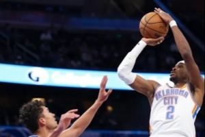 今天雷霆對(duì)魔術(shù)最后一節(jié)99比96膠著時(shí),亞歷山大一個(gè)單挑撤步三分,擊倒班凱羅。