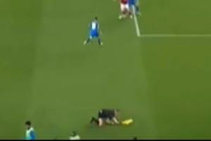 在阿森納對陣勒沃庫森的比賽,由于客隊替補席占據(jù)邊線,邊裁被擠到了場內(nèi)??