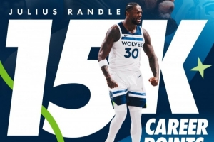 森林狼官方發(fā)推,祝賀蘭德爾達(dá)成15000分里程碑。