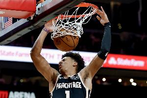 此役,老鷹球星杰倫·約翰遜出戰(zhàn)37分鐘,19投7中(三分7中2)、罰球2中1,得到17分11籃板9助攻2搶斷,有4次失誤,正負(fù)值+4。