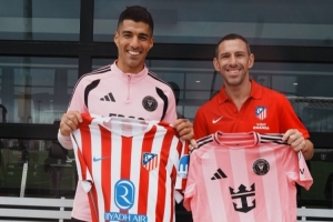 體育資訊3月21日訊 馬競名宿馬克西·羅德里格斯造訪邁阿密國際俱樂部,與蘇亞雷斯互贈球衣。