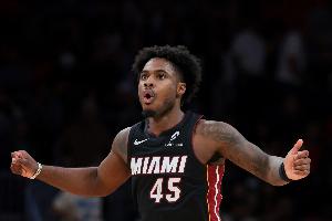 本場比賽,熱火后衛(wèi)戴維恩·米切爾出場37分鐘15投6中,三分10中3拿到15分1籃板9助攻2搶斷,正負(fù)值+8。