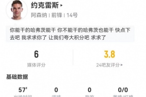 體育資訊1月18日訊 阿森納在本輪英超對陣諾丁漢森林,約克雷斯本場數據如下: