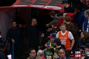 比賽最后時刻,杜蘭特一個不輕不重的推人被吹進(jìn)攻犯規(guī),烏度卡隨后怒噴裁判被驅(qū)逐,賽中,阿門在跑動時打到塞克斯頓面部吃到惡犯;