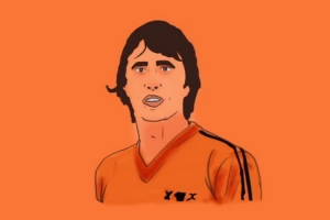 克魯伊夫球員時代為荷蘭國家隊出戰(zhàn)48場比賽,打進33球,助攻28次。