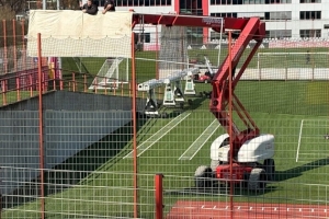 如今,需要增設訓練場地的拜仁打起了這個地塊的主意,即將拆除殆盡以迎接新空間。在對將來的施工現場的視察中,德雷森和弗洛因德還明確了一點:新的球場將與現有的1號和2號球場一樣,安裝一米高的視線防護欄,以便球隊進行全封閉訓練。拜仁高層讓工人在升降機上拉起一塊篷布,以此模擬視線防護欄的高度,以確保球星不被公眾窺視。這一建筑計劃恐怕不會讓拜仁球迷高興。畢竟,部分球迷會特意從德國各地趕來,只為看一眼他們的偶像。