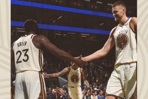 賽后球隊(duì)官方發(fā)布贏球海報(bào),封面人物為內(nèi)線(xiàn)組合波爾津吉斯+追夢(mèng)格林。
