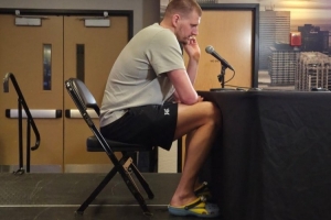 賽后,約基奇出席新聞發(fā)布會(huì),腳踩一雙小黃人拖鞋,反差萌拉滿。
