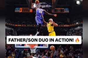 賽后詹姆斯更新了個(gè)人社媒,曬出自己和布朗尼同場(chǎng)扣籃帥照。配文寫道:“上陣父子兵!??”