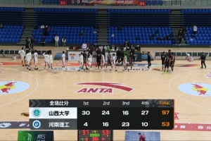 末節(jié)山西大學重新掌控局勢,他們高壓防守讓原本有所回暖的河南理工再度陷入啞火,后者6分鐘里僅得6分沒能繼續(xù)蠶食分差,山西大學這邊不斷制造殺傷罰球搶分,王昱翔和史悅龍相繼命中三分,山西大學送上一波21-6的攻勢徹底殺死比賽懸念。最終,山西大學97-53大勝河南理工收獲五連勝。