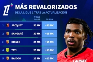 體育資訊3月28日訊 德國(guó)轉(zhuǎn)會(huì)市場(chǎng)更新法甲球員身價(jià),并列出了法甲球員身價(jià)上漲排名,熱雷米·雅凱+3500萬歐居首。