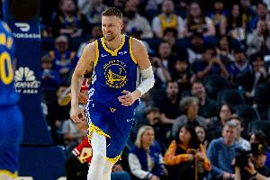 上半場,勇士前鋒波爾津吉斯表現不俗,出場13分鐘9投4中,三分6中3、罰球3中1拿到12分4籃板1助攻,正負值+9。