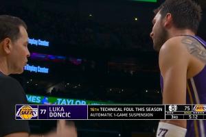 體育資訊3月28日訊 湖人vs籃網比賽第三節(jié),東契奇與扎威吃到技術犯規(guī)。