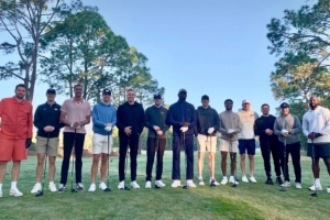 賽后,里夫斯接受了記者采訪。談到和隊(duì)友們打高爾夫,他說道:“看到他們現(xiàn)在如此享受這項(xiàng)運(yùn)動(dòng),對我來說意義重大,因?yàn)樗麄円郧翱偸浅靶ξ彝嬗螒?。我很高興他們現(xiàn)在也沉迷其中?!?/p>