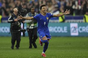 體育資訊3月30日訊 國際足球友誼賽,法國和哥倫比亞交手。本場比賽,杜埃在上半場打進國家隊處子球后,下半場上演了梅開二度的好戲。