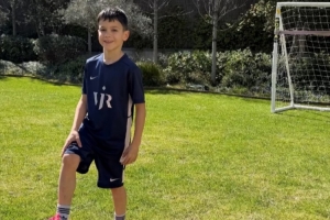 巴斯克斯社媒曬出孩子身穿維尼修斯球衣的照片,配文:“非常感謝維尼修斯,我們愛你?!?/p>