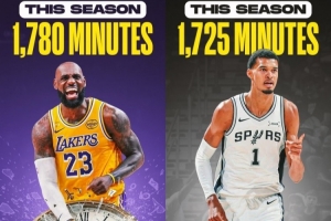 本賽季文班亞馬出戰(zhàn)59場(chǎng)比賽,場(chǎng)均出戰(zhàn)29.3分鐘