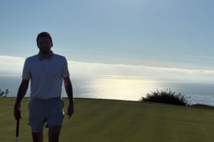 東契奇曬出一張他在海邊打高爾夫的照片。